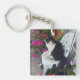 Porte-clés Tuxedo Cat Cute with Pretty Flowers Black Cats