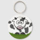 Vache ronde caricaturée sur bouton amusant porte - clé pour enfants (ou enfants à coeur)