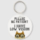Pour les personnes ayant une vision faible. Le texte dit : "Soyez patient, j'ai une faible vision". En dessous se trouve l'image d'un hibou portant des lunettes.