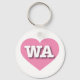 Ce porte - clé présente un coeur rose et cool contenant les lettres coques maures, blanches et chaudes WA, l'abréviation officielle de Washington, l'état à feuillage persistant.