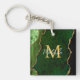 Ce porte - clé est décoré d'un élégant arrière - plan en marbre d'agate glamour avec des détails de gemme de géode et des accents de parties scintillant d'or faux. Le monogramme combine écriture manuscrite et polices sans serif modernes pour un look élégant et sophistiqué. Cela fera le cadeau idéal car il peut être customisé avec un nom et une initiale. Les teintes vertes et profondes le rendent parfait pour l'automne et l'hiver.