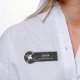 Personnalisez facilement cette étiquette de nom personnalisé avec votre propre logo d'entreprise, nom de l'employé, titre de travail ou tout autre texte personnalisé. Il est en plastique et disponible avec une broche de sécurité arrière ou une attache magnétique arrière (n'utilisez pas d'aimant avec pacemakers)., et dispose d'une conique radial brossé noir simulé dégradé métallique. Pas de quantité minimale de commande et pas de frais de configuration.