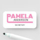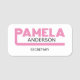 Le nom Pamela avec le nom de famille et le titre du travail. Les couleurs peuvent être changées.