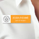Brighten up your team's look with this cheerful and energetic design, dominated by a bold, sunny orange panel for maximum visual appeal and branding. The employee's name and title stand out clearly in contrasting white text, ensuring quick and professional identification. A clean white square on the left is perfectly sectioned off to showcase your company logo, creating a vibrant, two-tone accessory that grabs attention in any professional setting.