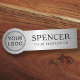 Les étiquettes de nom sont marquées avec votre logo commercial personnalisé. Nom personnalisable dans une police serif élégante et nom/société ci-dessous sur un arrière - plan gris argenté imprimé avec un look métal brossé simulé (dans l'oeuvre d'art). Vous pouvez modifier les polices et les couleurs de police à l'aide de l'outil de conception.