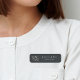 Island chic nametag présente votre nom et titre ou compagnie en lettrage blanc classique sur un arrière - plan noir doux orné d'une coquille de conque tropicale en fausse feuille d'or. Un très beau choix pour les coiffeurs, les employés de salon ou de spa, ou tous ceux qui travaillent sur une île ou une plage.