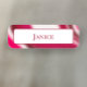 Diffusez un peu de joie de vacances avec ces étiquettes de nom colorées et festives. Ajoutez votre nom à ce badge de nom d'entreprise rayé rouge et rose et blanc cool. La typographie moderne et élégante en rouge profond est modifiable. Votre nom d'employé est inscrit en rouge profond sur un arrière - plan blanc. Les rayures texturées super de sucre de canne sont ma conception originale. J'ai pris les couleurs vives d'une photo originale d'une fleur de pivoine. Le motif à bonbons et pétillant entourent le simple texte clair sur un arrière - plan blanc. Personnalisez cet employé de Noël ou l'étiquette de nom du bénévole pour votre entreprise, église ou organisation.