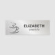 Café professionnel moderne et étiquette de nom de diner sur un faux arrière - plan métallique argent. Conservez le logo abstrait de la tasse de café ou téléchargez votre logo à la place. Ajoutez un nom et un titre dans une simple typographie.