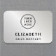 Marque de nom métallique en argent avec le logo de votre entreprise, entreprise ou organisation. Ajoutez un nom et un titre dans la typographie moderne simple.
