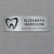 Marque de faux nom métallique en argent brossé pour dentistes, assistants dentaires, hygiénistes et autres membres d'un cabinet dentaire. Conservez le logo de la dent ou téléchargez votre logo à la place. Ajoutez un nom et un titre dans une simple typographie.
