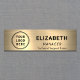 Balise de nom simple avec le logo de votre entreprise ou de votre organisation contre un faux arrière - plan métallique or. Ajoutez un nom, un titre et un département ou un autre texte dans la typographie moderne.