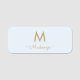 Porte-nom Monogramme de script en or bleu clair moderne