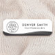 Balise de nom blanc avec dégradé noir et gris foncé, bordure incurvée et votre nom et titre personnalisés. Téléchargez votre propre logo, photo ou autre graphique et créez des étiquettes de nom pour votre entreprise ou événement. Vous pouvez modifier les polices et les couleurs à l'aide de l'outil de conception.