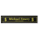 Cette plaque de nom ou panneau de bureau a un cadre doré et des lettres dorées avec des graphiques Dollar aux bords. Les couleurs principales arrière - plan et cadre arrière - plan peuvent être changées selon vos besoins. Tout le texte peut également être modifié.