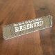 Élégant panneau de table "Réservé" dans un effet de grain de bois et d'écriture blanche. N'hésitez pas à changer le mot "Réservé" pour répondre à vos besoins.