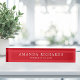 Elégante plaque de nom avec votre nom et titre imprimé en blanc sur un arrière - plan rouge.
