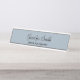 Plaque de bureau personnalisée avec place pour le nom et le titre de l'emploi pour elle. Le style et la taille de la police peuvent être modifiés si nécessaire. Customisez la couleur bleu arrière - plan poussiéreuse pour correspondre à votre décor de bureau.
