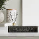 L'élégante plaque signalétique du bureau est ornée d'un riche arrière - plan noir, décoré de fils verticaux de faux fils dorés qui descendent du haut. Personnalisez avec votre nom et titre ou nom d'entreprise en lettres blanches classiques.