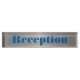 Plaque de bureau en métal à l'aspect aluminium brossé. Le texte bleu gras est prêt à personnaliser pour lire tout ce que vous voulez. Idéal pour n'importe quelle entreprise.