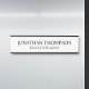 Faites de votre entreprise une entreprise plus professionnelle avec une plaque de nom professionnelle en noir et blanc. Cette plaque de nom pendante comporte le nom et le titre en noir professionnel serif style de police sur l'arrière - plan blanc. Parfait pour un agent immobilier, consultant, comptable, gestionnaire, enseignant et de nombreuses autres professions.