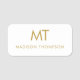 Un simple design blanc et or incorporant votre nom d'employé et initiales monogramme. Parfait pour les entreprises, les magasins de détail, les bureaux, le service à la clientèle, les salons, etc. Customisez le logo et le texte de votre entreprise et faites-le vous-même.