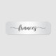 Fille style moderne écriture manuscrite signature swash style de police de script sur un dégradé gris clair, argent et blanc. Ajoutez une ombre portée si vous le souhaitez. Customisez la taille et la couleur de la police selon vos besoins. Forme rectangulaire longue pour votre étiquette de nom.