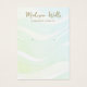 Police manuscrite sur motif à vague dans les tons subtils de bleu et vert d'aqua Elegant porte d'affichage à oreille avec deux "marqueurs" de trou imprimé - ce ne sont pas des trous réels.