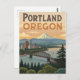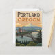 Bewundern Sie die Schönheit des Nordwestens der Pazifikregion mit dieser Postkarte mit der Skyline von Portland, der historischen Brücke und dem majestätischen Berghof im Hintergrund. Mit üppiger Vegetation, ruhigem Wasser und den berühmten Sehenswürdigkeiten der Stadt ist es der ideale Ort für Reisende, Sammler und Portland-Liebhaber.