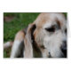 This a photo of a senior beagle lounging in the yard. Beagles are a laid-back, fun breed of dog, and this cute beagle is no exception.
