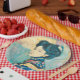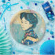 Dieses Design zeigt Kunstwerke des japanischen Malers Fujishima Takeji (藤 島 二, 1867-1943), bekannt für seine Arbeit in der Entwicklung von Romantik und Impressionismus innerhalb der von Western inspirierten Kunstbewegungen des späten 19. und frühen 20. Jahrhunderts japanische Malerei. Es zeigt eine Frau, die einen traditionellen japanischen Kimono trägt. Das Kunstwerk ist hochstilisiert und verwendet verschiedene Pastellfarben zur Darstellung dieser eleganten asiatischen Dame.