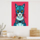 Portrait d'un chat bleu mignon et adorable sur un arrière - plan rouge. C'est un art généré par l'IA.