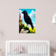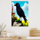 Une corneille noire assise sur une pierre avec un château dans l'arrière - plan. C'est un art généré par l'IA.