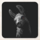 Portrait Head Niedlich Llama mit schwarzem Hinterg Rechteckiger Pappuntersetzer