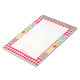 Un bloc-notes avec une section centrale transparente, en rose, sur un arrière - plan de rangées de pois de différentes tailles et des tons bohème inspirés du rose, du vert, du bleu, de l'orange, du jaune et du bordeaux. Personnalisez avec votre nom.