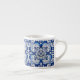 Portugiesisches Azulejo-Muster in Blau und Weiß, das an die Oberfläche einer Espresso-Tasse transportiert wird, unter Wahrung seiner Geschichte und Tradition. Ein tolles Geschenk für einen Kaffeeliebhaber oder ein Party, das sich im Haus aufwärmt.