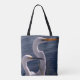 Diese Tote Tasche zeigt ein Originalfoto von ZoeSPEAK von zwei weißen, langen, hektarierten Ufervögeln, die sich durch das tiefblaue Wasser des Ozeans bilden. Der Vogel mit dem langen, spitzen schwarzen Schnabel ist ein schneesicheres Eret. Der Vogel mit dem langen, spitz-gelben orangefarbenen Schnabel ist ein großartiges Ego.