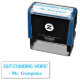 This motivating rubber stamp design feature the motivational message "OUTSTANDING WORK!" and a custom educator name. It could be used by a teacher, educator, or tutor when grading student work, to acknowledge that a student has,
