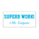 Dieses ermutigende Design der Gummi Briefmarke beinhaltet die Nachricht "SUPERB WORK!" und den Namen eines personalisierten Lehrers. Es könnte von einem Lehrer oder Erzieher verwendet werden, wenn er die Aufgaben markiert, um anzuerkennen, dass ein Schüler gut abgeschnitten hat.