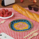 Gelb, rosa, orange, blau, grün, goldgelb gestrichen, naiv, einfach mandala.