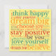 Farbenfrohe Positivität, jemanden mit diesem Word Art Muster zu senden, inspirierend Phrasen in Multicoloren von rot, gelb, orange, aquamarin und lila mit den motivierend Zitaten, Glauben, wählen Sie Freude denken, Träumen Big, Bleibe Positiv, Liebe Sie selbst und sein Sie, auf einem gelben Hintergrund.