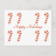 Acht Bonbons (zwei in jeder Ecke) sind in Rot und Weiß dargestellt. Im Mittelpunkt steht der Text "Happy Holidays". Zurück zeigt die Hintergrundfarbe rot. ***Teil eines koordinierten Set BKM1a.