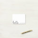 Un design de post-it note minimaliste avec un script manuscrit stylisé, une grande phrase typographique "bonjour" associée à votre propre nom et un simple coeur noir. Conçu dans un style mininaliste moderne, en noir et blanc simple et propre. Le cadeau ou accessoire personnalisé parfait pour n'importe quelle période de l'année!