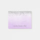 Notes de post-it avec la conception de parties scintillantes d'argent de faux et l'arrière - plan pourpre d'aquarelle d'ombre.