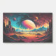 Paysage de la planète Alien Psychedélique Bannière spatiale modèle, arrière - plan Illustration horizontale de l'avenir avec montagnes, planètes, arbres, lune Évasion surréaliste