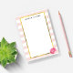 Ces notes collantes et pratiques comprennent un arrière - plan à rayures blanches et rose pastel, une bordure en feuille d'or et une pivoine d'aquarelle rose cachée dans le coin inférieur droit. Customisez avec un nom ou le texte de votre choix en lettres noires modernes.