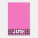 Bloc-notes rose profond personnalisé avec votre nom en gros caractères blancs en gras au bas du bloc-notes contre un arrière - plan de buffle rose profond chèque. Bloc-notes personnalisé avec un détail de vérification de buffle rose, votre nom en gros caractères gras, et une forte nuance de rose qui rendra vos notes et rappels difficiles à manquer!