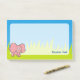 Caricature d'éléphant rose mignon sur l'herbe et l'arrière - plan du ciel. Texte personnalisé.