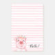 Un adorable cochon d'aquarelle à couronne florale sur un arrière - plan de rayures roses. Le texte dit : Bonjour ! (customisez facilement le texte en quelques clics !)