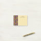 Des notes collantes avec un motif amusant sur le thème du camping. Placer sur un arrière - plan brun rougeâtre. Les éléments du motif comprennent un feu de camp, une tente, une guitare, une pelle et un sac à dos. Personnalisez avec un nom.