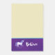 De grandes notes collantes avec la bordure inférieure décorée d'une jolie licorne aquarelle peinte en pastel pastel douce rose, violet et bleu. Texte de typographie inspirationnel dit Croyez en une police tendance avec une étoile au-dessus de la lettre i. Placé sur un arrière - plan royal violet. Le reste de l'arrière - plan est d'une couleur bronzée douce.